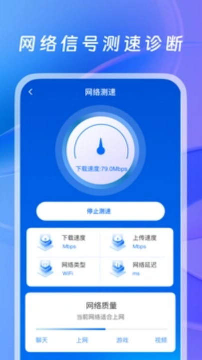 1、WiFi测速,一键测速,方便快捷。