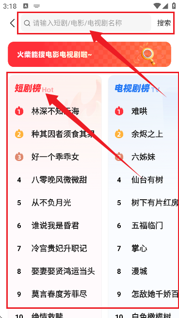 4、或者通过顶部的搜索框输入剧名实现精准搜索,而且还能看到平台上的搜索榜单,让你可以轻松知晓全网的追剧动向。