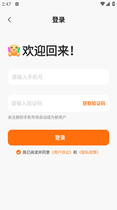 3、输入手机号和验证码完成登录/注册