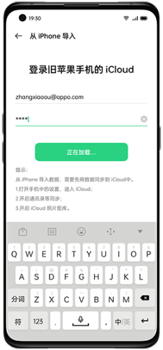 1、打开OPPO手机搬家应用,并选择”从iPhone导入”。输入苹果手机的iCloud账号和密码;