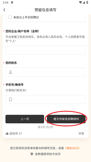3、填写完相关信息后,点击“提交并联系招聘顾问”即可