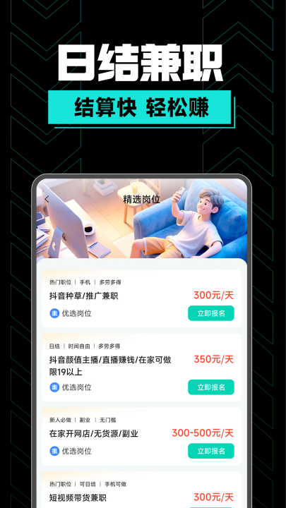 每一个兼职岗位都需要经过审核才可发布到平台,帮你过滤虚假、劣质兼职!