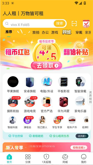 租手机、租电脑、租相机、租pocket3、租平板、租耳机、租智能手表、租AI眼镜、租机器人、租机器狗、租游戏机、租无人机、租vr设备、租美容个护、租大健康、租家居家电、租电动车、租乐器等租用需求人人租均可满足,提供全品类租用服务。