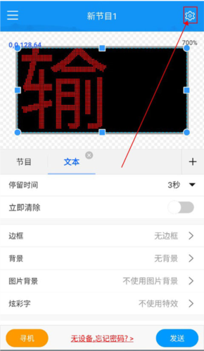 节目编辑完成,点击软件右下角的"发送"按钮即可把节目更新到显示屏上,等待发送成功即可。