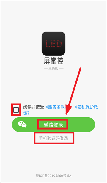 进入登录界面后,勾选阅读并接受 《服务条款》 《隐私保护政策》,点击微信登录使用微信账号授权登录即可