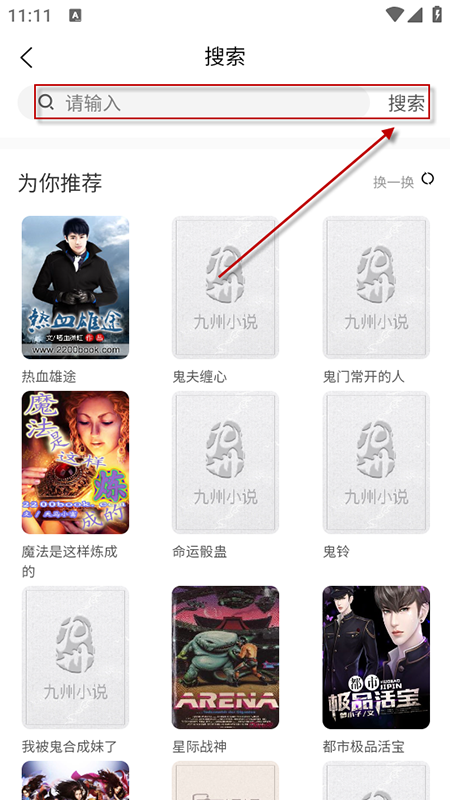 2、点击首页顶部“全网搜书”栏,输入书名或作者名搜索。