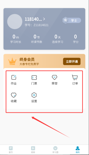 4、个人中心集中展示我的作业任务、电子门票、订单详情及收藏内容。