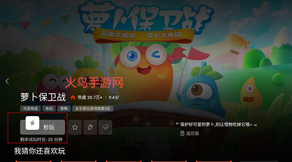 2、选择完自己喜欢的游戏后,可以点击秒玩,试玩二十分钟。
