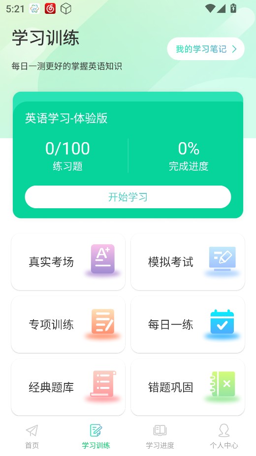 3、在学习训练板块可以多方面模拟,全方位提升英语水平。
