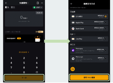 这时候,Bybit 推荐入金的支付方式,选取你方便的入金方式即可,最后再点击「使用TWD 购买」