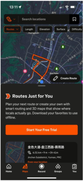 随处探索:我们的路线工具使用去识别化的 Strava 数据,可根据你的偏好智能地推荐热门路线。你还可以构建自己的路线。