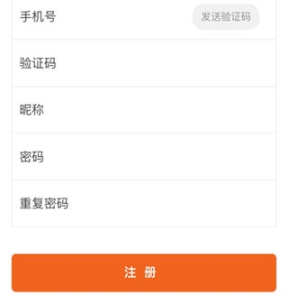 第三步:填写手机号,获取验证码;依次填写昵称以及密码;然后点击注册;即可注册完成。