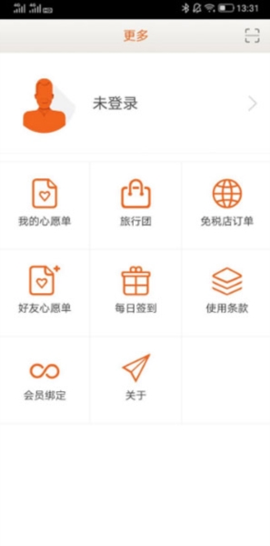 第一步:下载安装并打开日上会员app,点击右下角更多,然后点击上方头像处(未登录)。