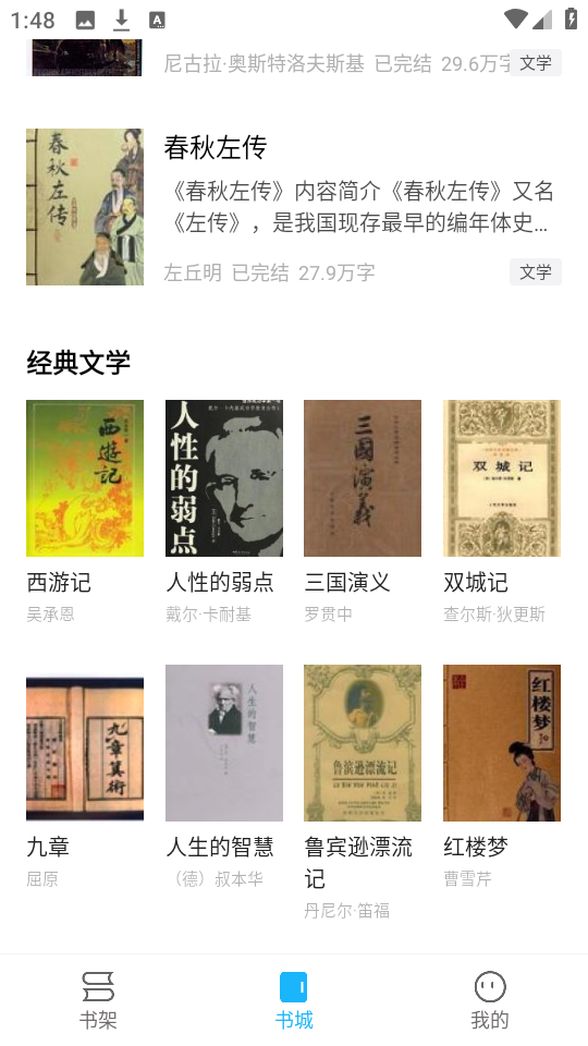 2、进入主界面后,点击底部导航栏中的“书城”,这里汇集了众多经典名著和优秀文学作品。