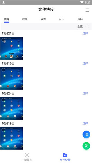 4、点击文件快传,可以选择要传输的文件传输到新机上面去