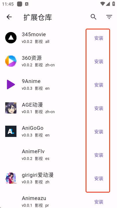 6、这里可以看到有多个源,选择直接需要的安装即可