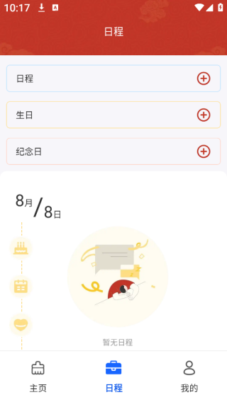 3、进入到【日程】,可以实时查看到各种待办事项以及节日纪念日信息。