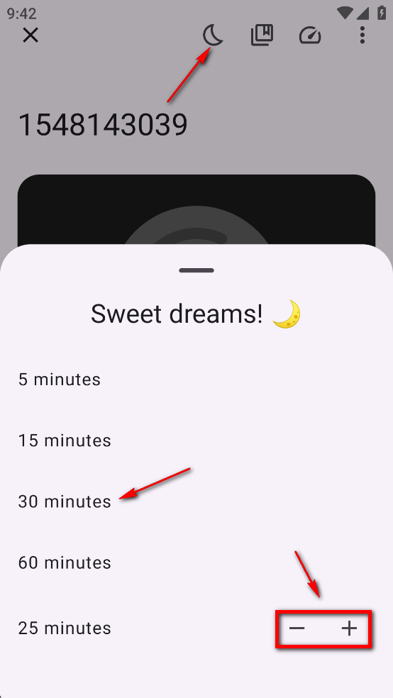 点击月亮按钮,可以自由选择时间,也可以通过+、-来调节播放时间;