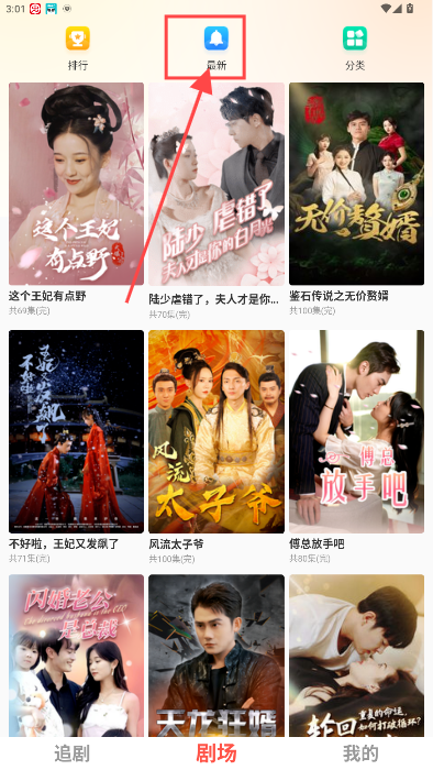 2、然后就会出现最新上线或是更新的短剧