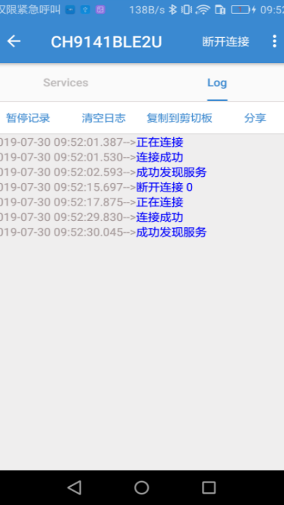 9、日志功能,查看蓝牙连接与通讯日志,支持邮件发送日志。