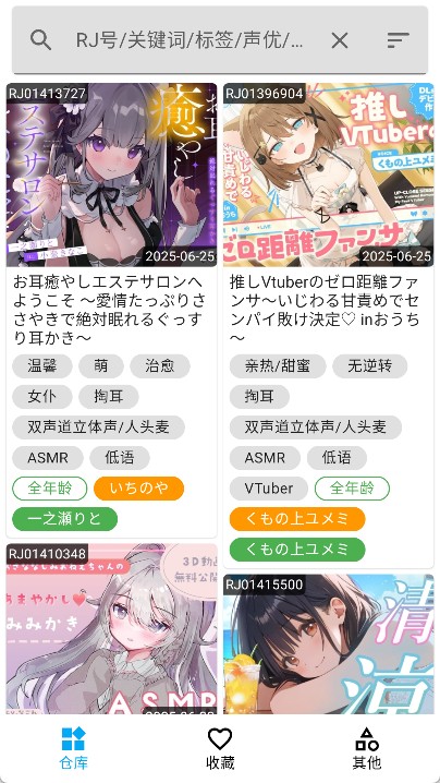 2、精准资源检索:支持RJ号、关键词、标签多维搜索,结果按热度与相关性排序,快速定位内容。