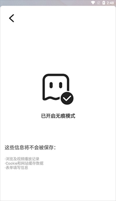 2、点击开启无痕模式