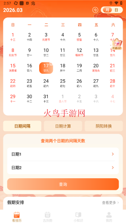 2、日历查询:日历查询界面风格简单,操作便利,用户体验良好,都是可以免费去操作的。