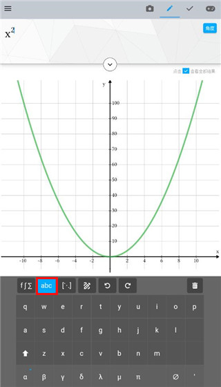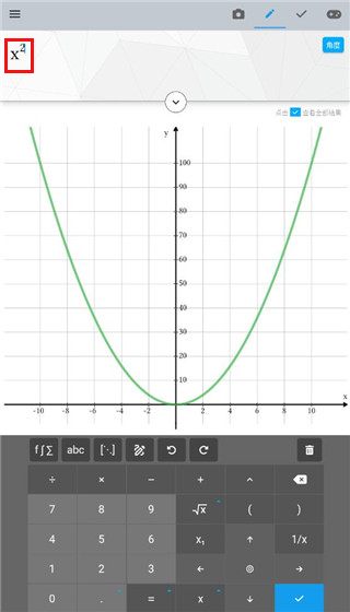 5、当打出x的平方时,还可以绘制出x二次方的函数图