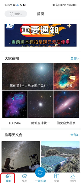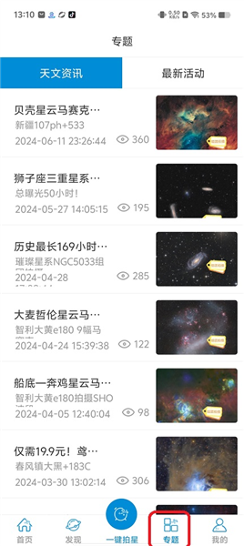 第一步:首页,查看很多天文动态等。