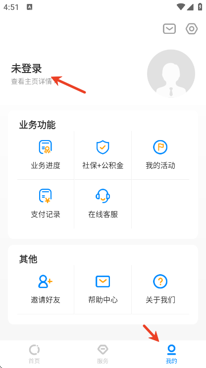 2、点击下方的我的,点击箭头所指。