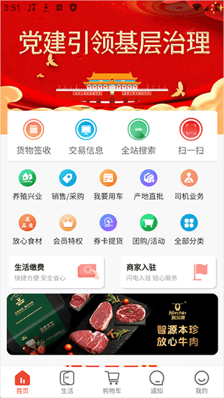 线上商城:提供食品、生鲜、家电、日用品等商品购买,支持商家入驻。