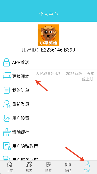 2、点击下方的我的,点击更换课本