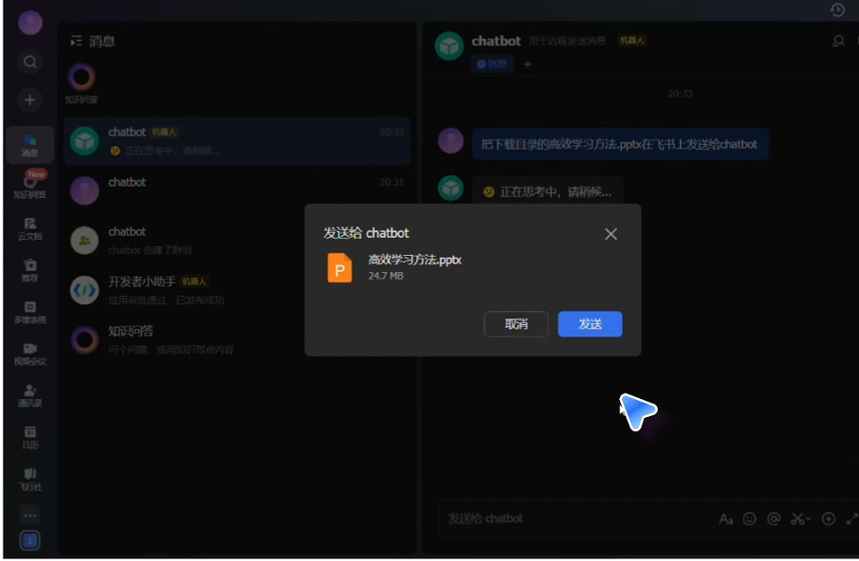 2、在手机端发送指令,让电脑端的元气AI Bot执行各种任务