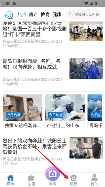 1、打开软件,点击底部导航栏中的【便民】入口。