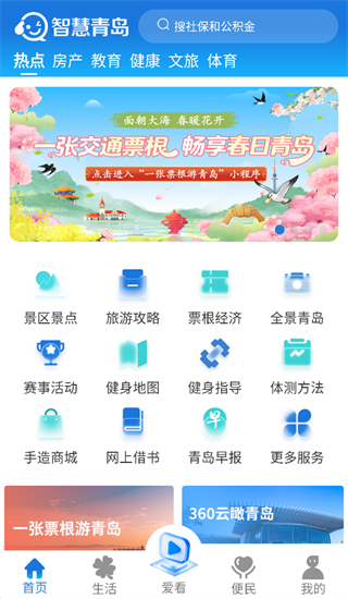 智慧青岛官方下载是青岛智慧同城信息科技有限公司专为青岛制作的智慧城市移动服务平台,平台拥有首页,生活,爱看,便民,我的等板块,涵盖了青岛吃喝玩乐购娱办事等等方方面面功能,可以给予用户更智慧便捷青岛生活新体验。