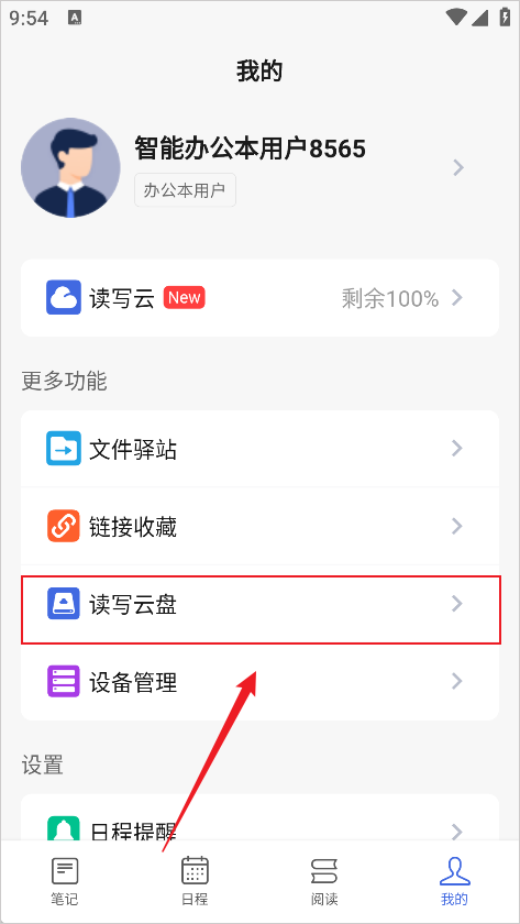 1、进入读写笔记App点击右下角我的