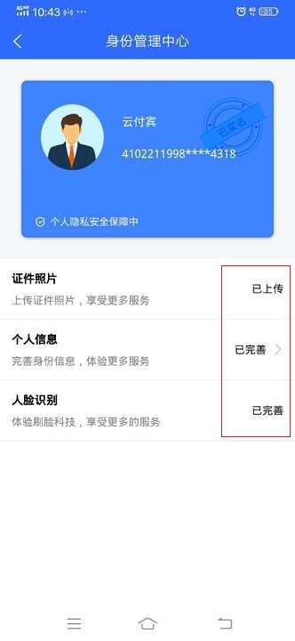 实名认证完成后,显示如下图: