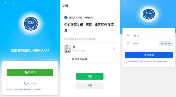 招采人员评价APP采用免注册登录的方式,用户可以通过微信登录,