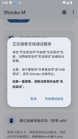 1、安卓10以上系统可以打开无线调试功能,然后输入配对码即可连接,其与Shizuku的激活使用一样