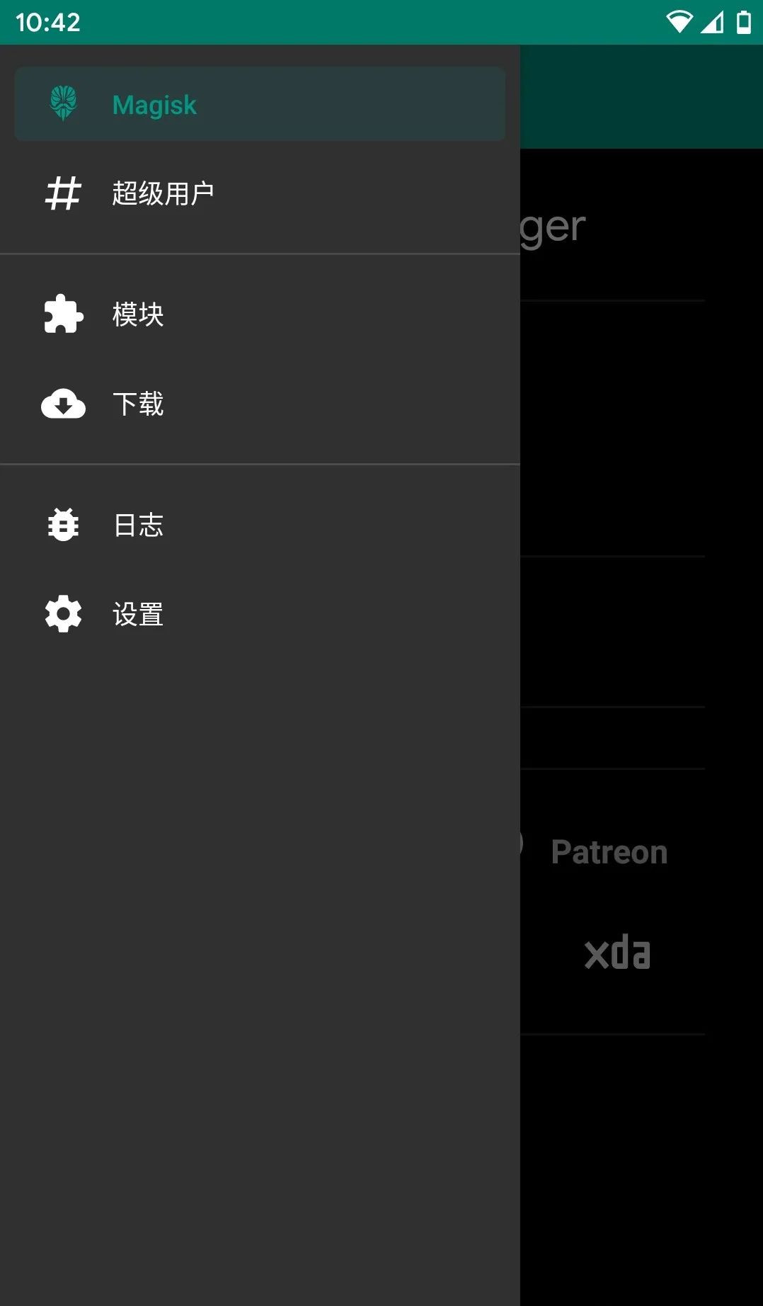1、打开Magisk软件,点击菜单按钮,选择模块