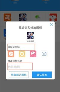 4、重命名图标需要选择一个新的应用图标以及新的游戏名称