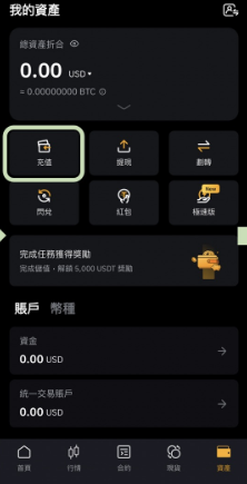 可在资产兑换功能中一键将BTC、ETH、USDT等不同币种进行兑换。
