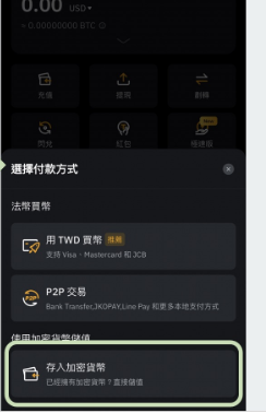 入金方式包括信用卡买币、P2P交易和加密货币充值。
