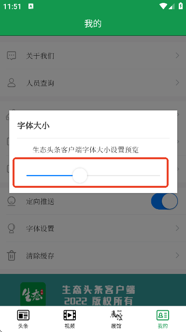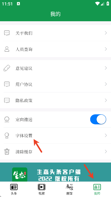 2、点击下方的我的,选择字体设置;