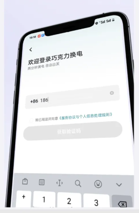 打开巧克力换电APP,输入手机号进行验证登录
