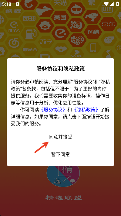 2、阅读服务协议和隐私政策,并点击同意