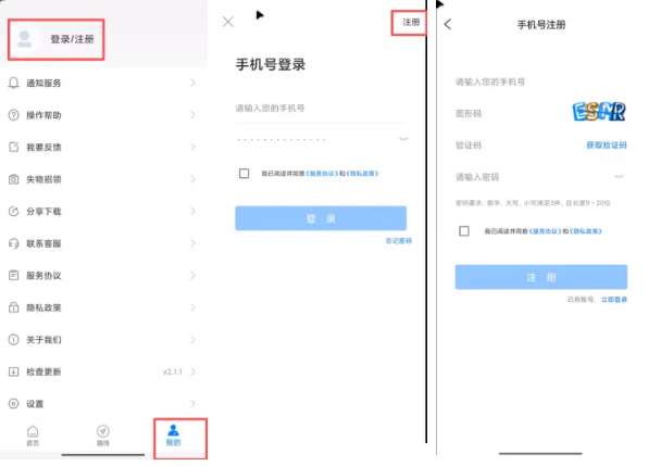 无账号的点击注册,输入图形码,短信验证码,输入密码,密码必须有字母大小写,带数字长度9-12位,不要特殊字符。
