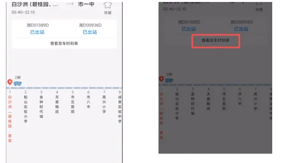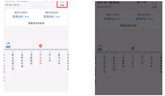 选择具体线路点击进入线路详情界面,查看车辆实时位置、查看发车时刻表,可以收藏线路。