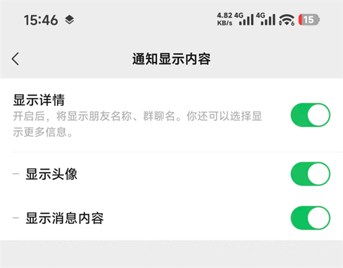 在本次的正式版本中,通知的显示内容支持自定义显示头像/消息内容自定义了,大家可以根据自己的需求开关。