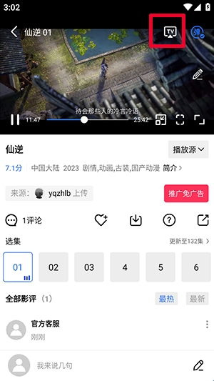 5、直接点击影片即可播放,点击右上角的小电视图标可以投屏。